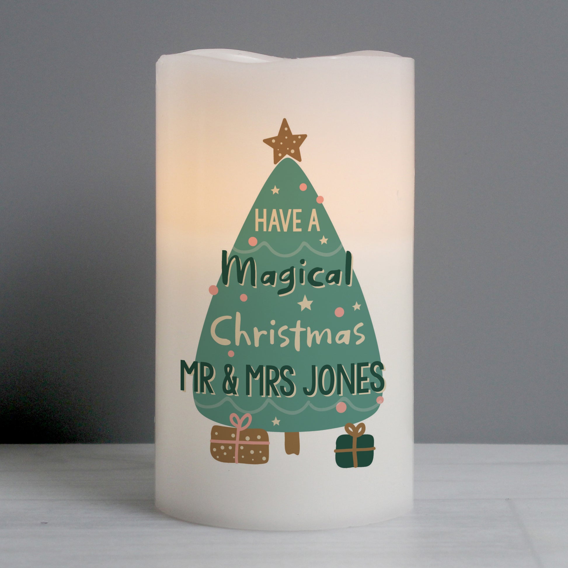 This beautiful and safe Personalised Christmas LED Candle is the perfect addition to your Christmas Decorations.